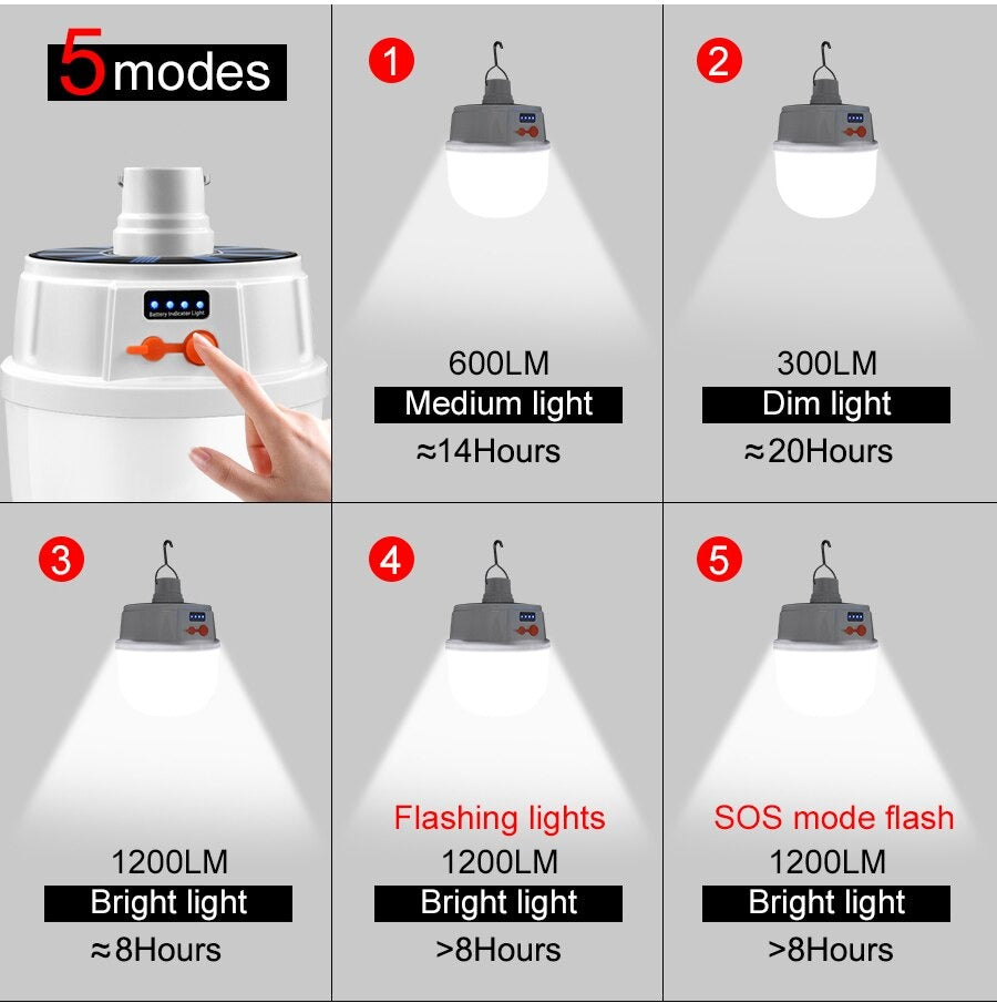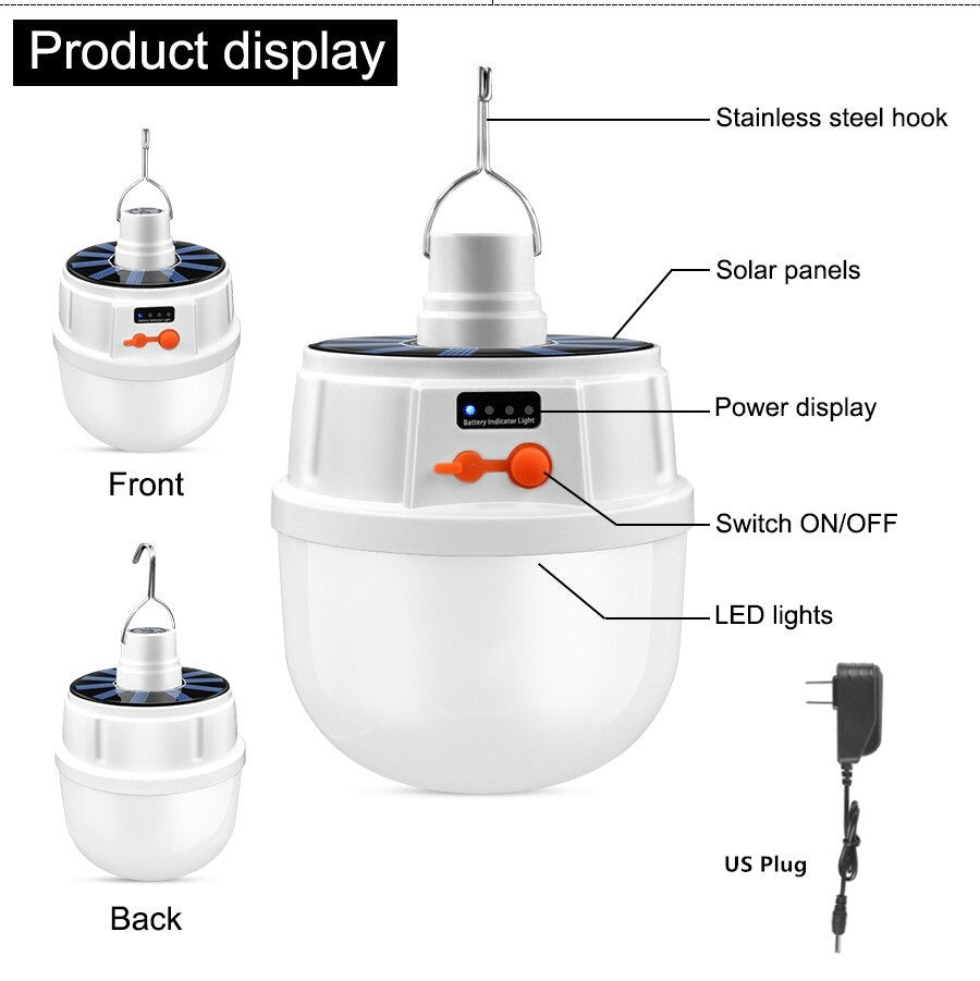 Ampoule à énergie solaire 24/42 LED, lampe à charge USB, éclairage étanche pour Camping maison jardin... .
