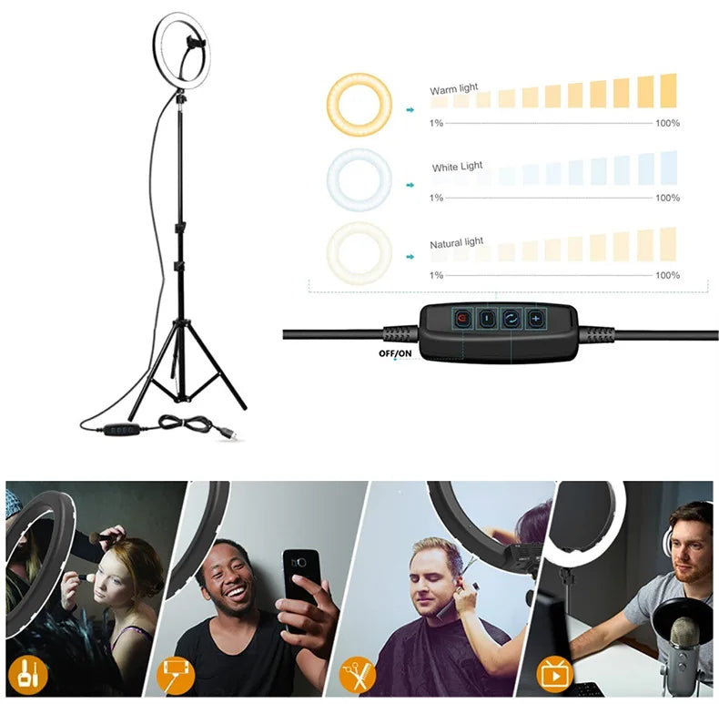 Optimisez votre éclairage pour vos selfies avec l'anneau lumineux de 10 pouces. Le trépied mobile offrira une stabilité parfaite, tandis que l'anneau lumineux circulaire à LED vous permettra de réaliser des vidéos YouTube, des diffusions en direct, du maquillage et de la photographie avec une lumière douce et homogène. Obtenez des résultats professionnels à chaque fois.