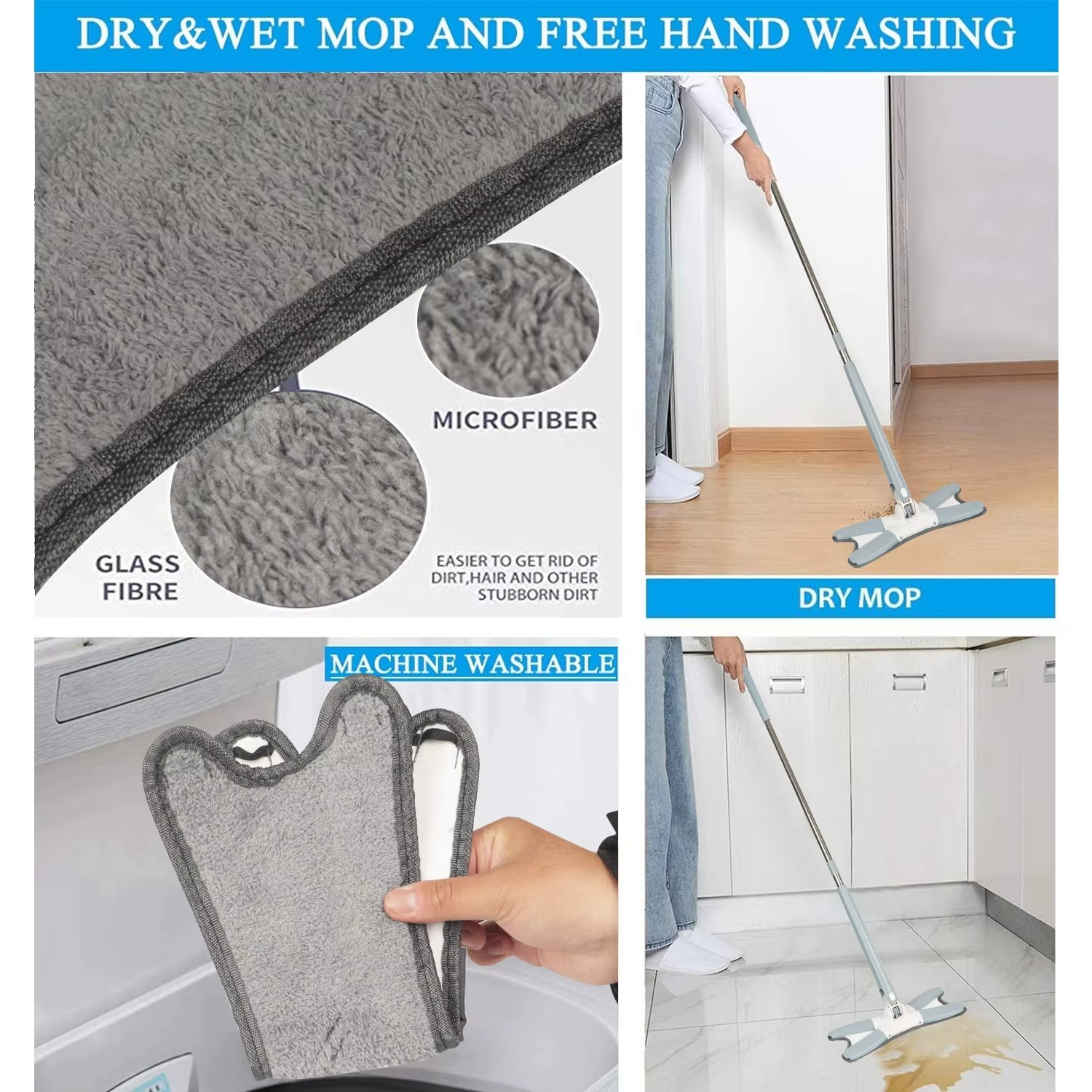 Balai Plat Microfibre 40 cm à Tige Rétractable en Acier Inoxydable – Nettoyage Facile et Efficace