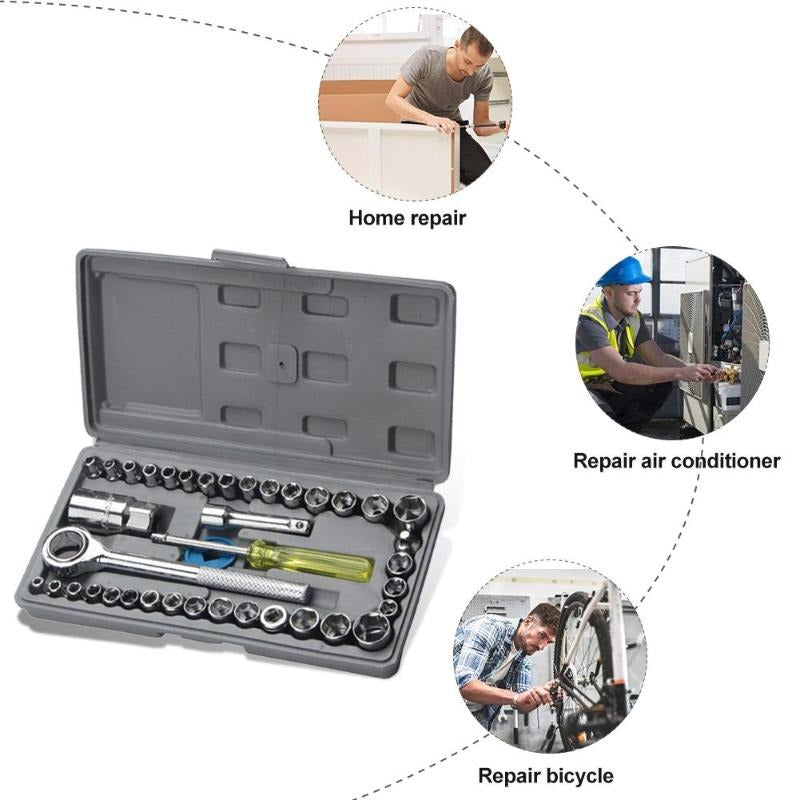 Clé à douille combinée en acier au chrome et au Vanadium, tournevis, outil de réparation de voiture et de moto domestique, 46 pièces/ensemble.