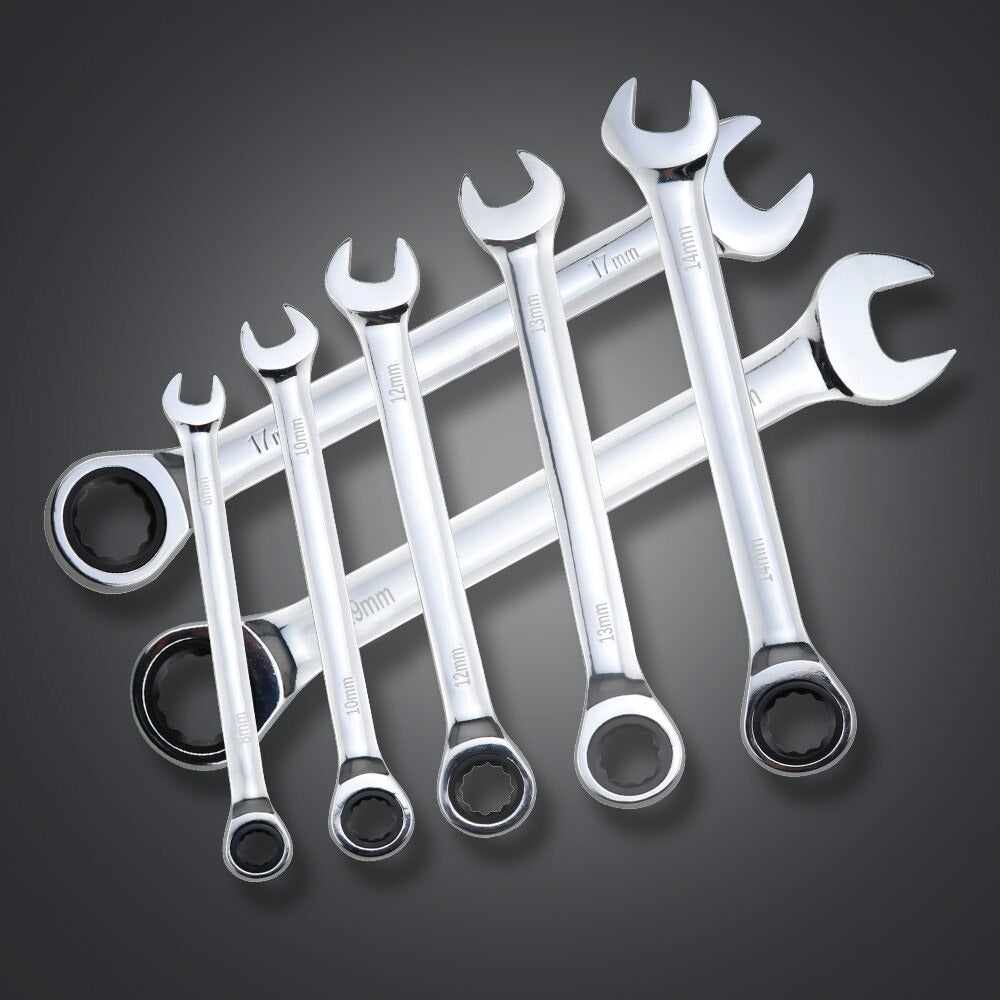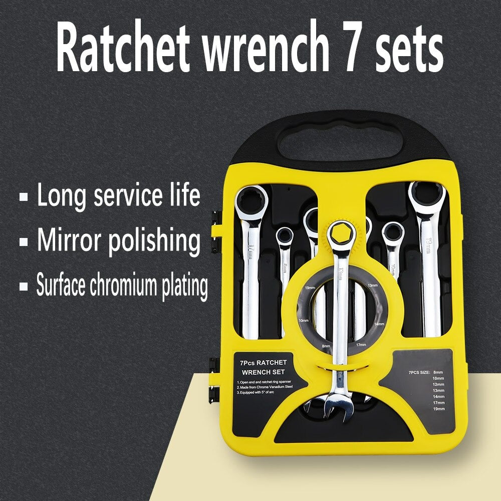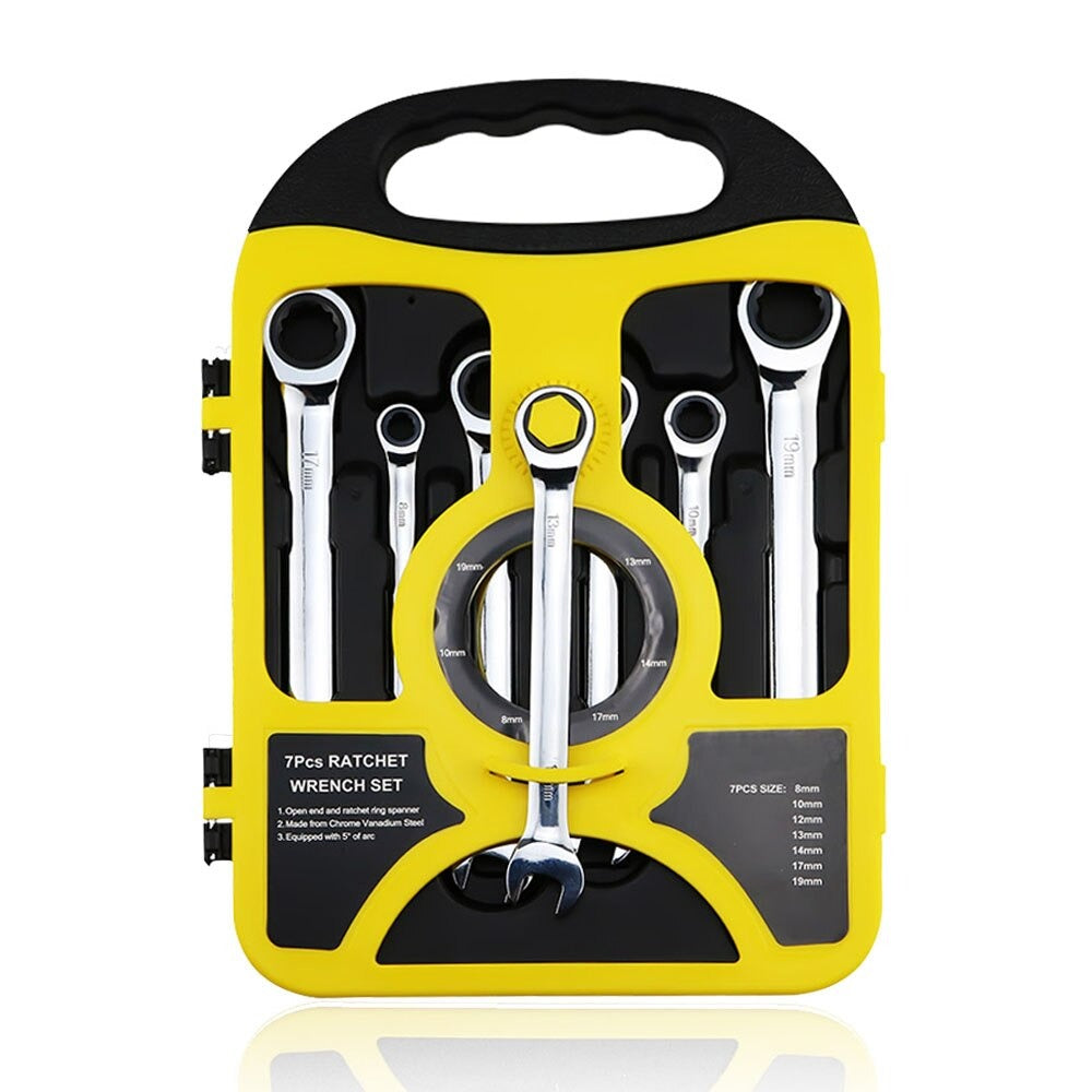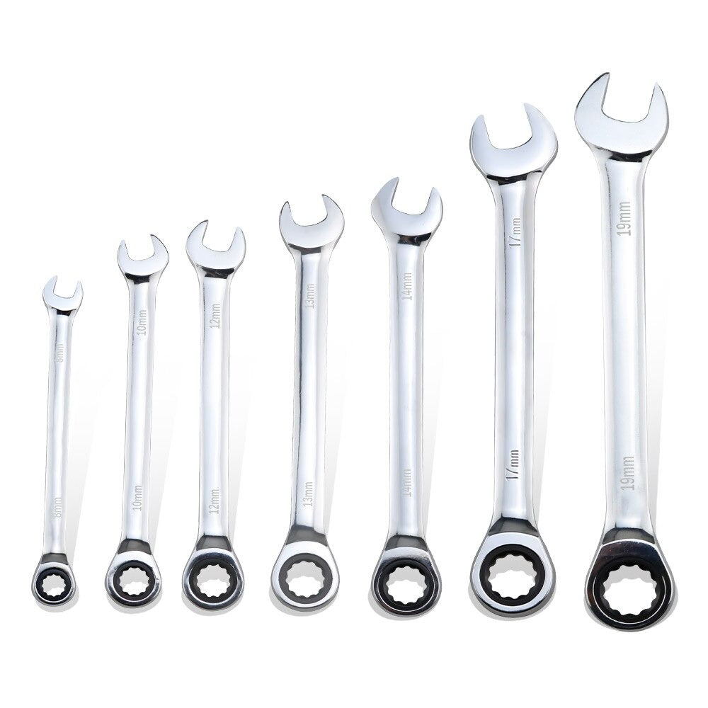 Ensemble de 7 clés à cliquet à Double tête, 8-19mm, 72T, couple élevé.