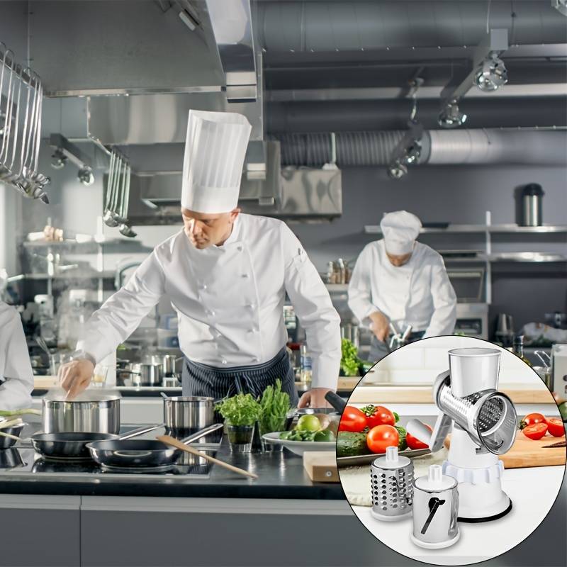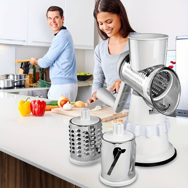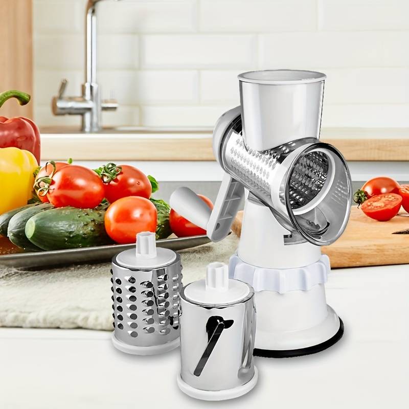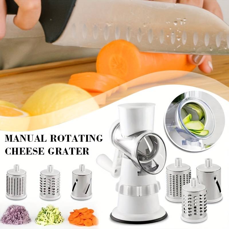 Cuisinez comme un pro avec l'Ensemble PANCERKA 4 en 1 - une coupe-légumes polyvalente avec une râpe rotative et une déchiqueteuse à fromage ainsi qu'une trancheuse mandoline ronde. Sa base à ventouse à forte adhérence et son design restaurant vous permettent de couper et râper facilement et précisément pour des repas savoureux. Bonne fête de l'Aïd !