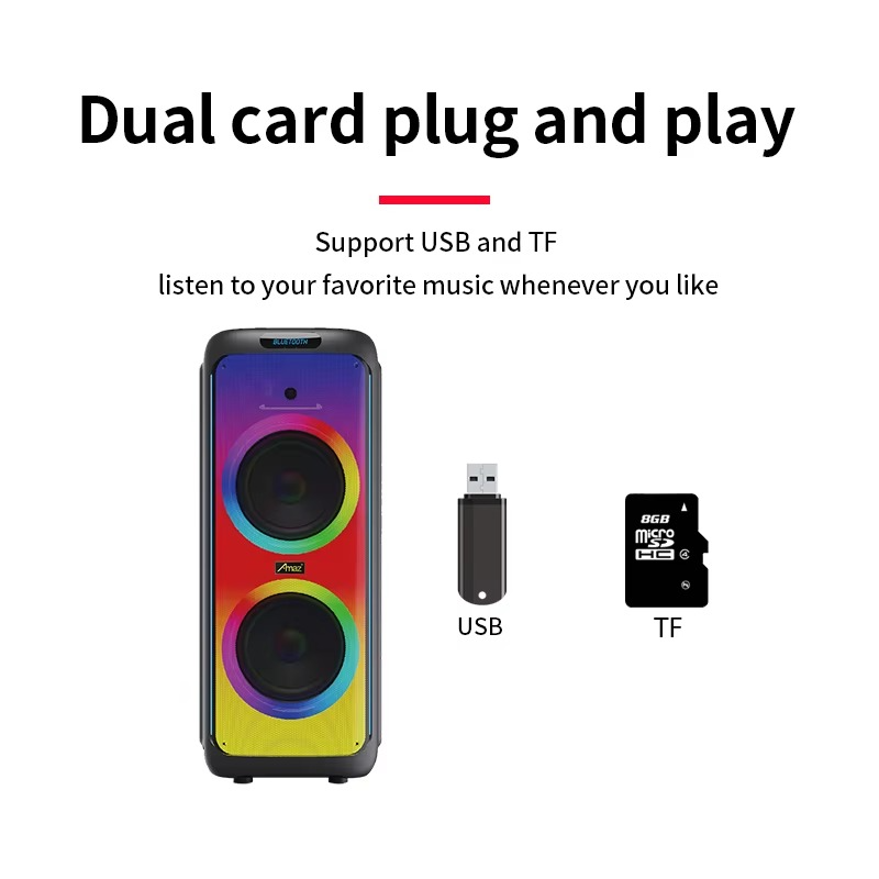• Éclairage LED multicolore : Laissez-vous emporter par l’ambiance visuelle créée par les lumières LED multicolores qui s’illuminent au rythme de la musique, apportant une touche festive et dynamique à chaque chanson.