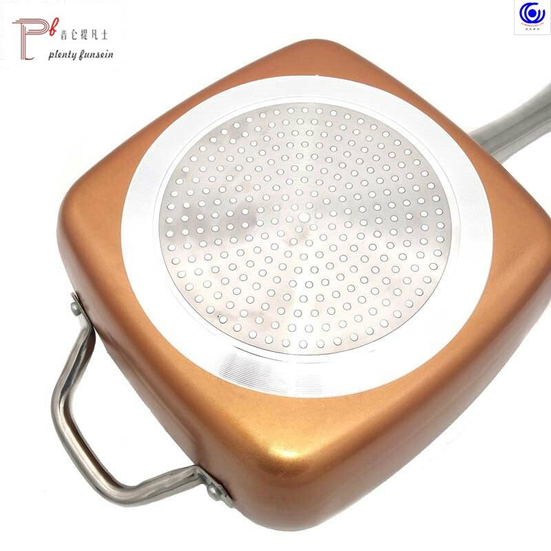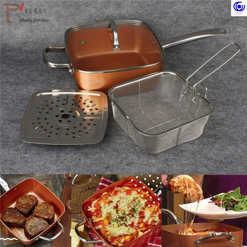 Ensemble d'ustensiles de cuisine de 9.5 pouces, 4 pièces, plaques de cuivre antiadhésives carrées, pour Chef à Induction avec couvercle en verre, panier à friture et à vapeur