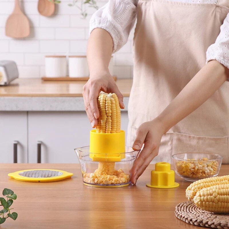 1)4-en-1:Batteuse de maïs multifonctionnelle/éplucheur/râpe/bol, ustensiles de cuisine pratiques, gadgets de cuisine, flaker d'ail, peut être pelé/broyé/stocké/chargé de matériaux alimentaires, un ensemble dans la main, avec de nombreuses fonctions.