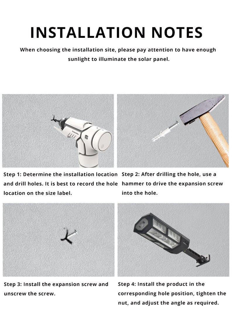 Lors du choix du site d'installation, veuillez faire attention à avoir suffisamment de lumière solaire pour éclairer le panneau solaire