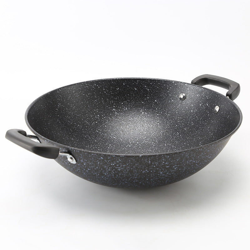 Ce grand wok antiadhésif à double oreille en pierre médicale est parfait pour une cuisine saine. Avec son pot spécial extra large et son fond rond, vous pourrez cuisiner vos plats préférés de manière uniforme et efficace. Sa surface antiadhésive vous permettra de cuisiner sans ajouter de matières grasses, assurant ainsi des repas plus sains pour vous et votre famille.