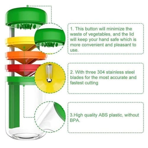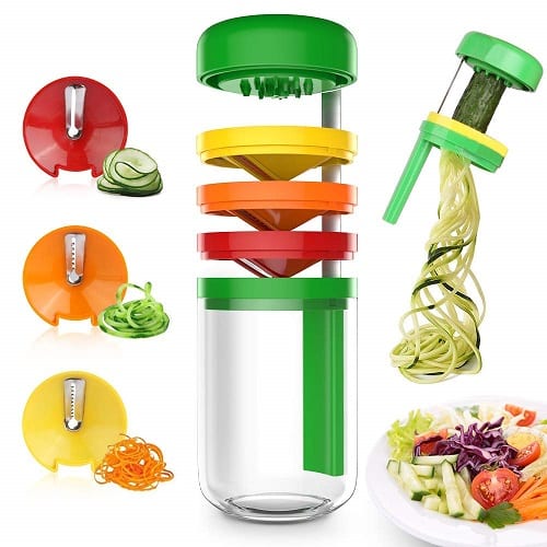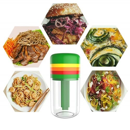 1. NOUVELLE CONCEPTION 2018: Notre trancheuse à légumes à spirale portative est livrée avec un récipient. Vous n'avez donc pas besoin de placer votre propre récipient dans le fond. Excellent pour préparer des repas de légumes sains.